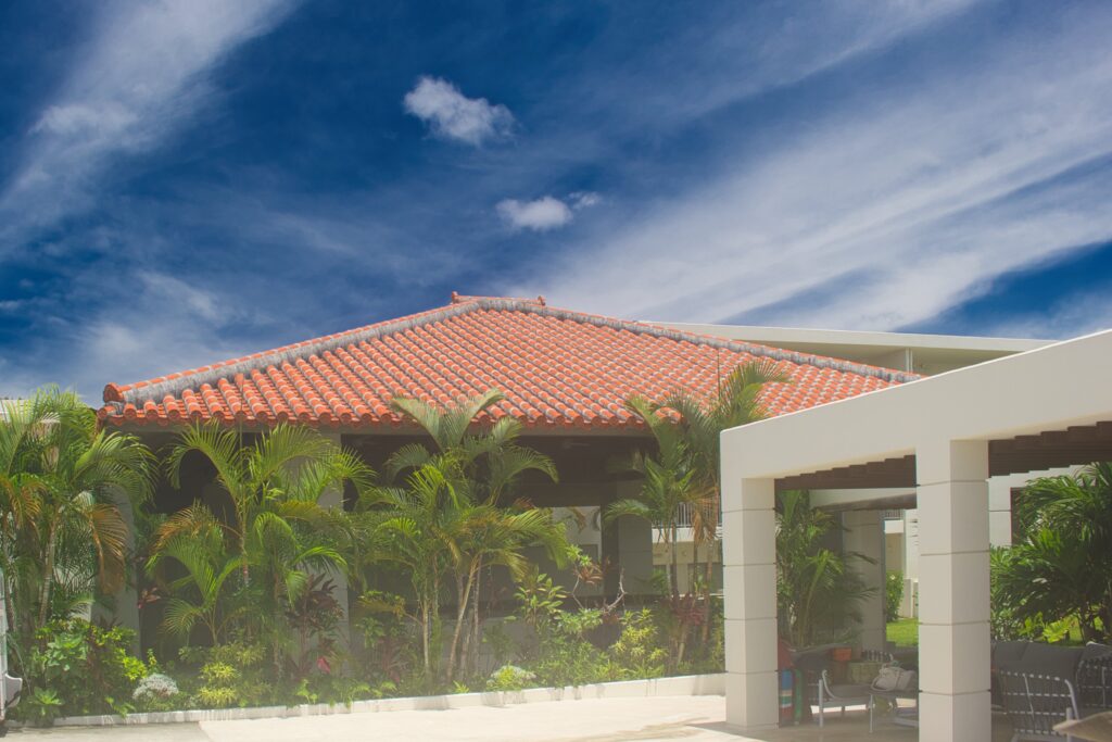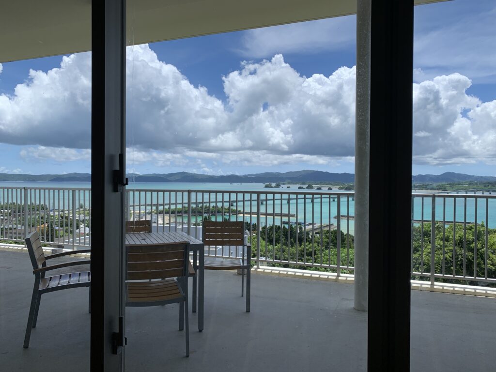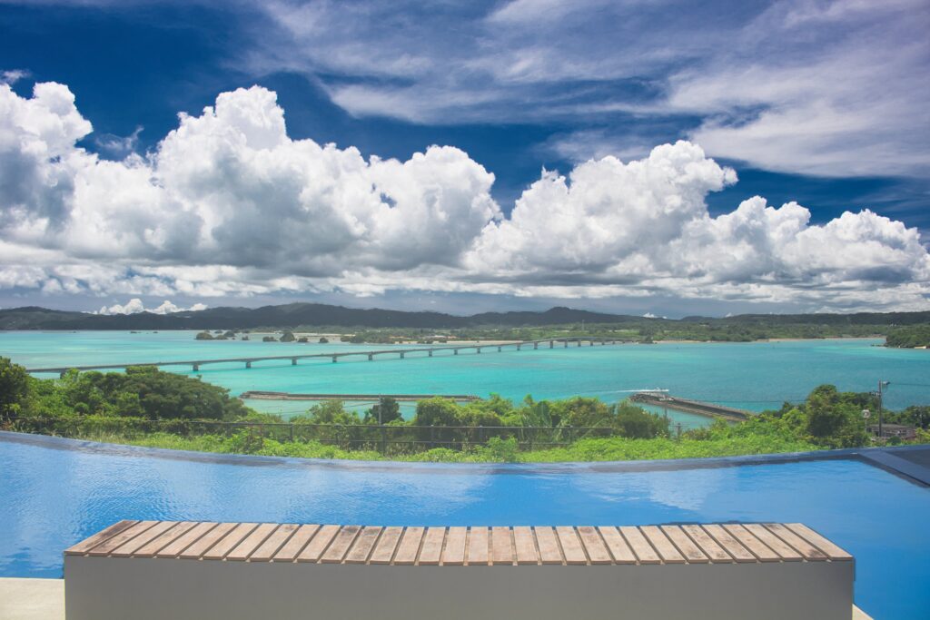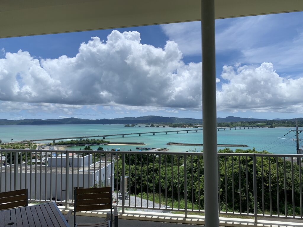 赤瓦に白い壁、ヤシ系の植物や南国リゾート感がとてもあり、非日常を感じさせてくれます。しかもこの部屋はオーシャンビューで古宇利大橋を見渡せる絶景、そして部屋からプール?のようなものがあり・・・説明難しいなw