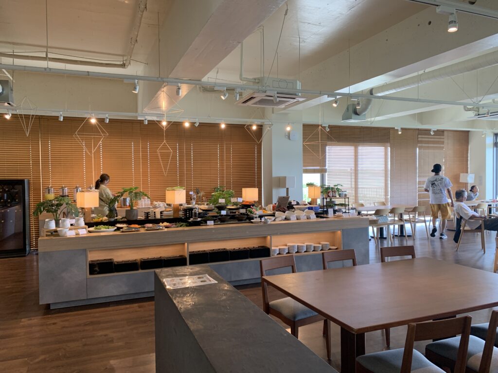 木目調でアジアな雰囲気もあります。テーブルも結構ありはしますが、ここで宿泊者全員が朝食となるとちょっと手狭な気もしました。レストランとしては十分な広さですけどね。