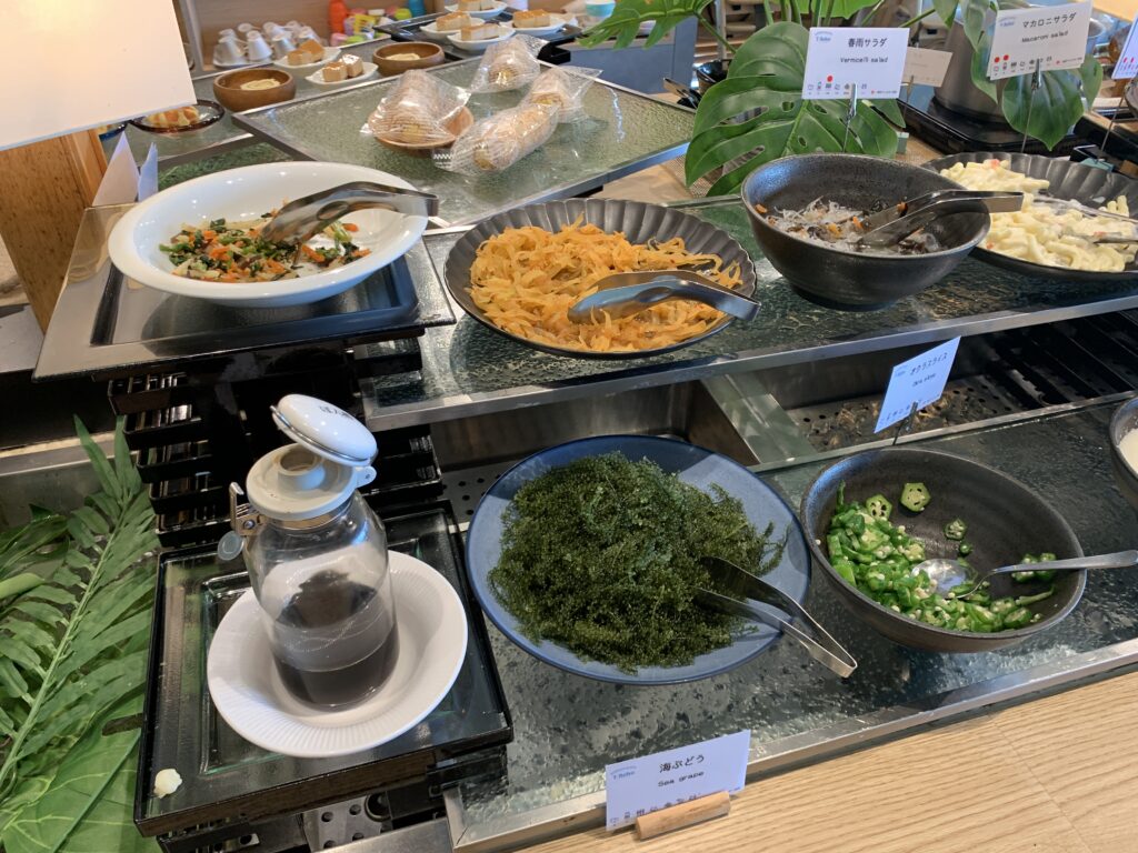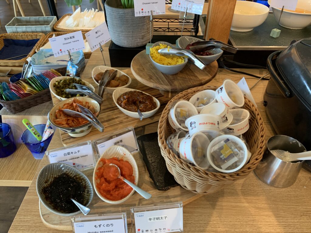 なぜか納豆や漬物などもありました。朝食ブッフェから活用でしょうか?