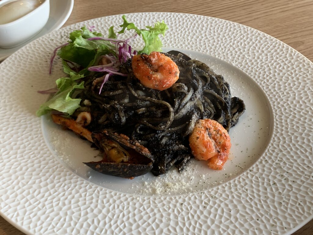 糸満産イカ墨のペスカトーレ。我が家はみんなイカ墨パスタ好きなのであるとつい頼んじゃいます。