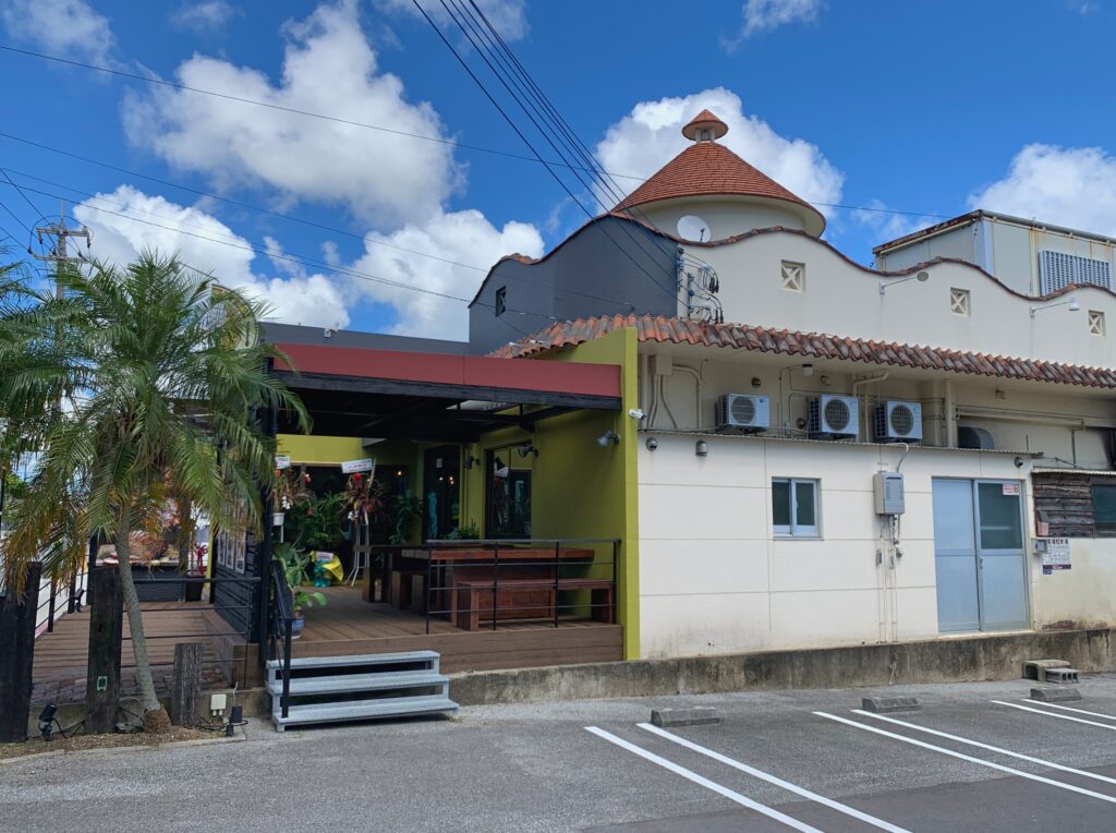 沖縄市の宮里中学校の近くにあります。大通り沿いですが地元の人以外はあまり使わない道沿いでしょうか。コザ十字路からうるま市方面に向かい、美里郵便局の交差点を右折した先にあります。昔ペリペリチキンがあった場所ですね。
