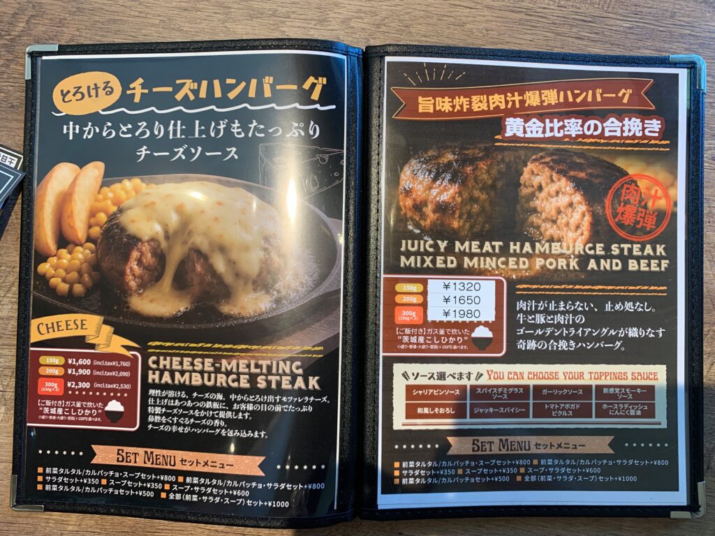 ハンバーグ以外にもチキンとかその他肉料理も色々。ですが、ハンバーグと店名にいれているくらいですからここでそれ以外を頼むのはちょっと気が引けるというか、もったいないというかw