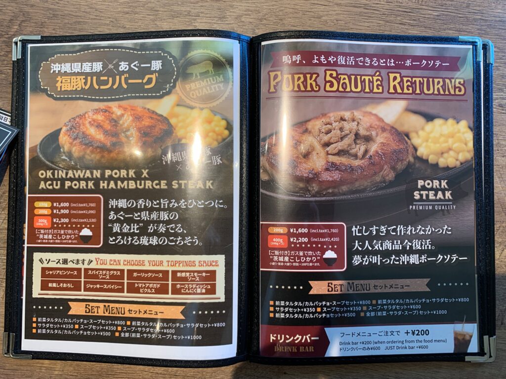 おすすめは琉球ハンバーグなのでしょうかね。お肉にこだわっている感じがあります。ちょっとお高いですな。