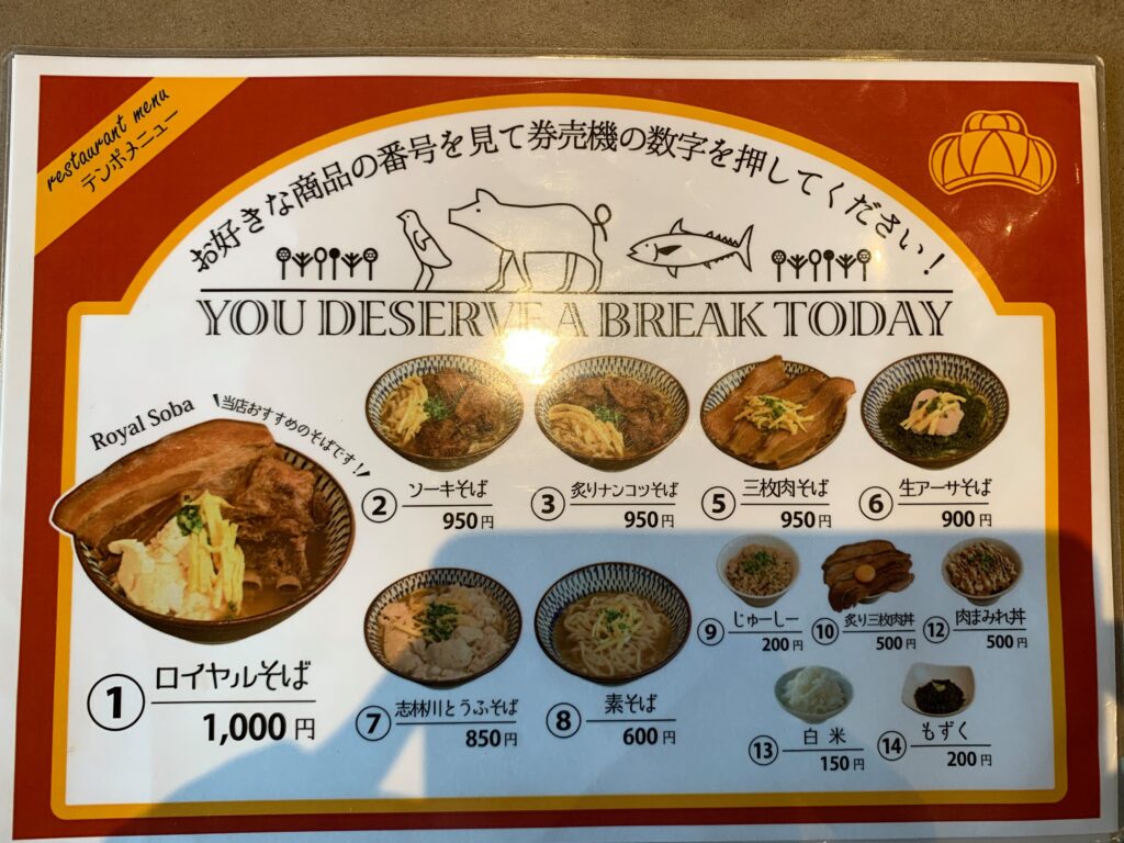メニューは一般的なトッピングによって変わる感じです。迷ったらお店の名前が付いたニューロイヤルそばがおすすめ。そのほか期間限定ものもあったりします。