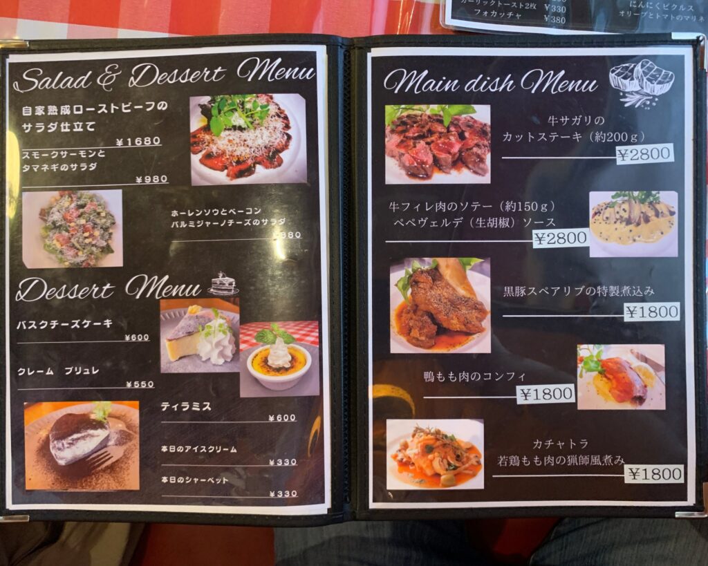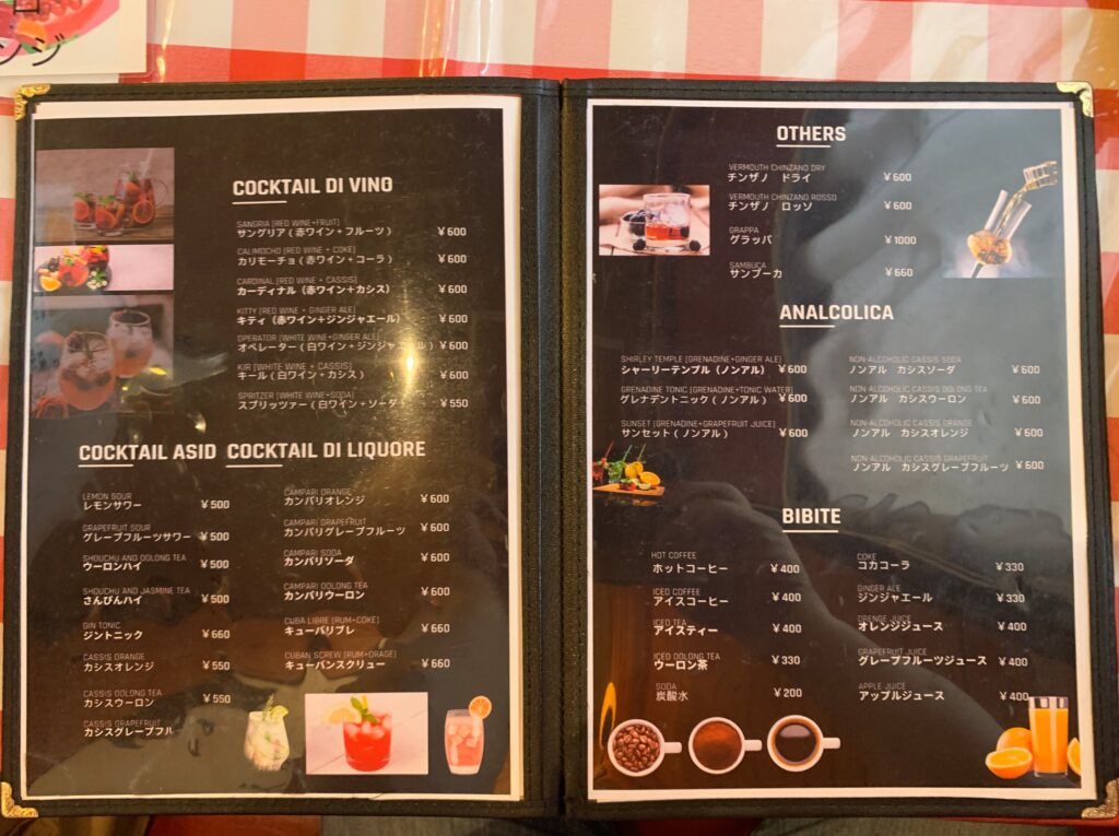 アルコールメニューも色々。ワインのカクテルが珍しく感じました。このメニューだとワインが飲みたくなる感じですね。