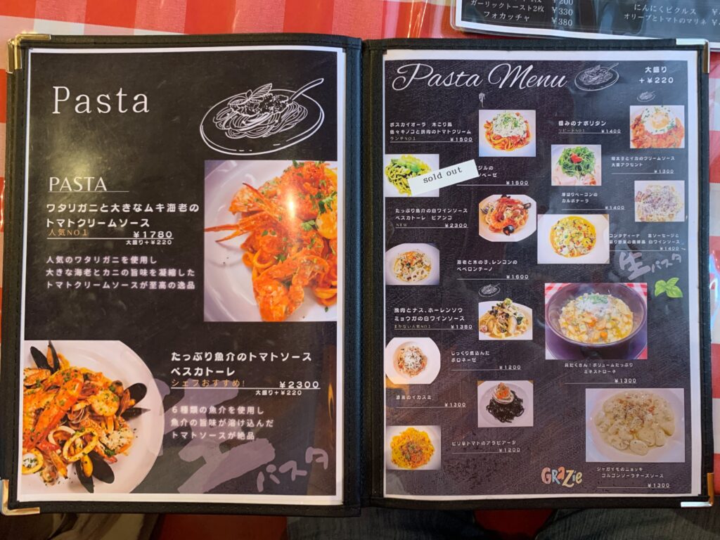 ピザとパスタがありますが種類的にはパスタが多め。おすすめもパスタな雰囲気。